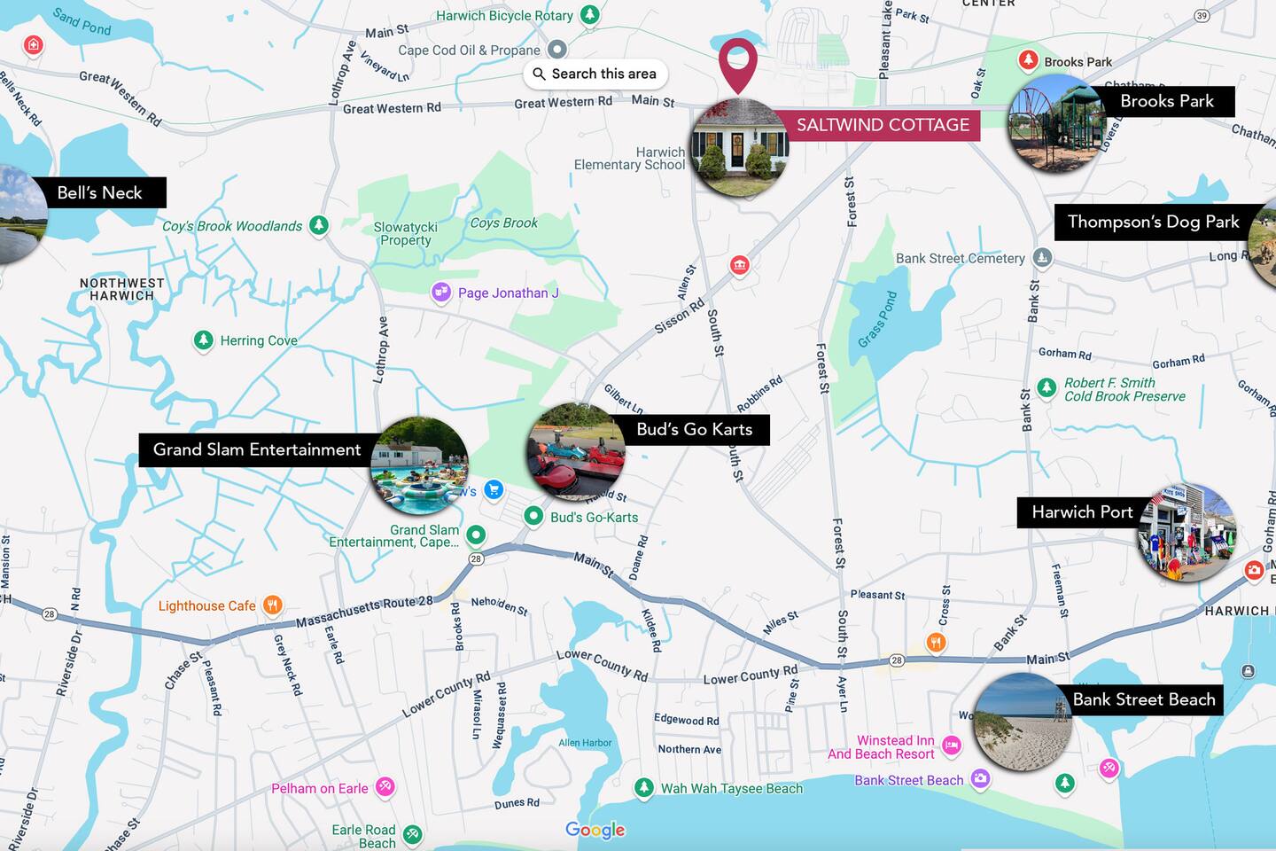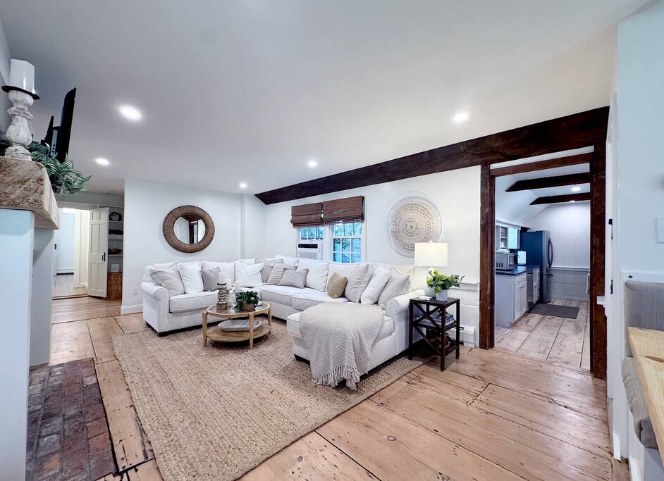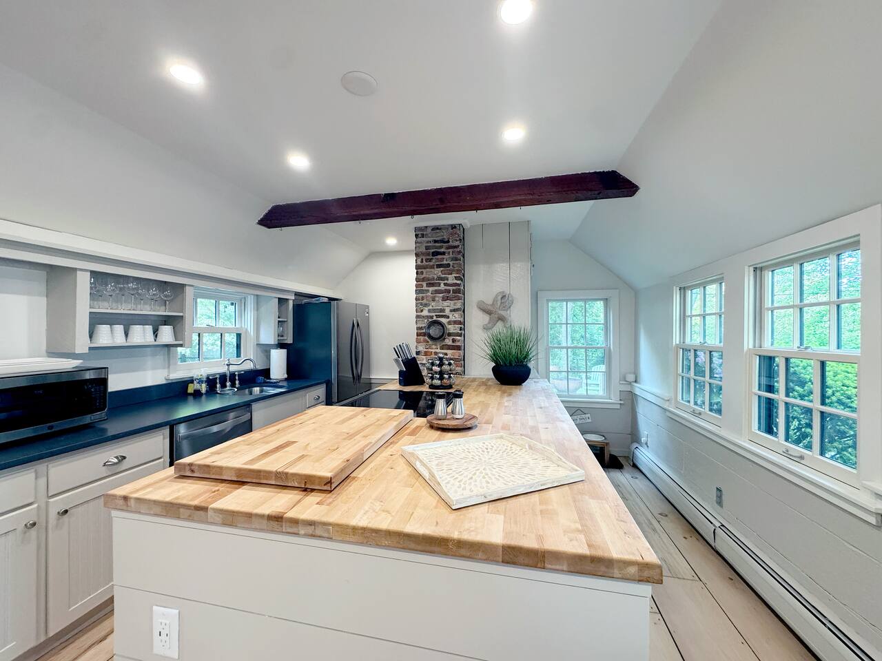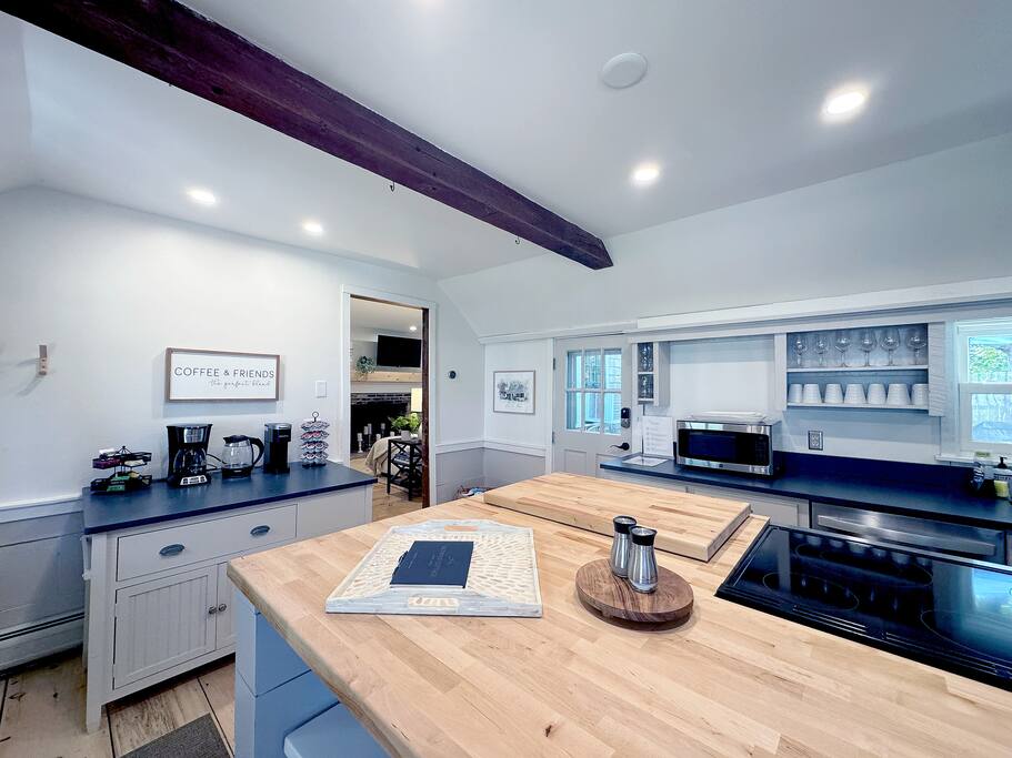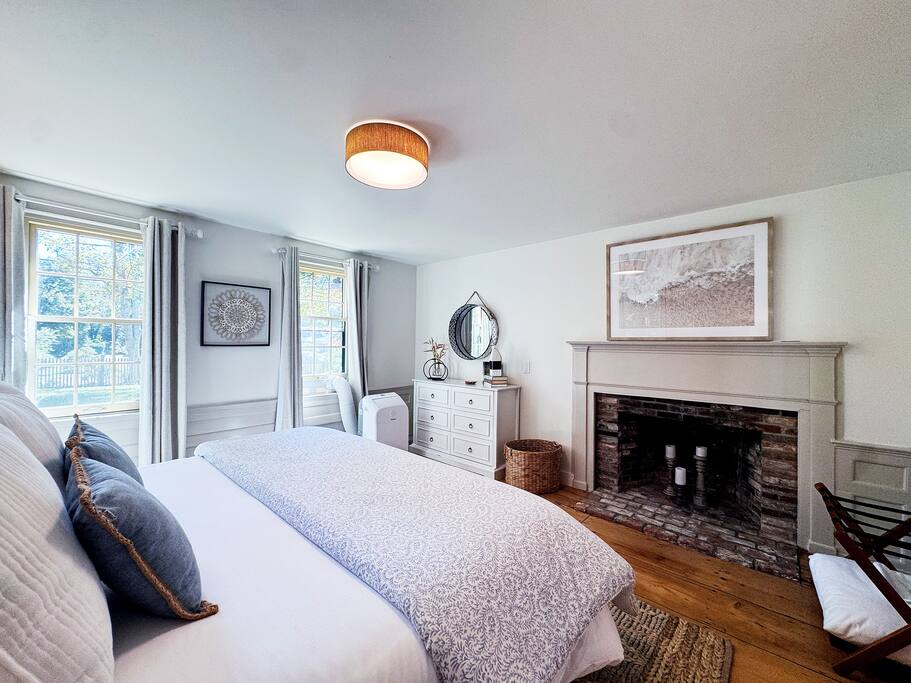 BEDROOMS: Sleeping Arrangements (Sleeps 8): King Bedroom - first floor (sleeps 2) - King-sized bed - Large bureau King Bedroom - first floor (sleeps 2) - King-sized bed - Large bureau and closet King Bedroom - second floor (sleeps 2) - King-sized bed - Large bureau and 2 closets Twin Bedroom - second floor (sleeps 2) - 2 Twin-sized beds - Closet BATHROOMS: • Large Fully Renovated Full Bath (2nd Floor) - soaker tub and separate stand up shower • Full Bath (1st Floor) - stand up shower • Half Bath (1st Floor) KITCHEN: • Soapstone counters • Large butcher block island • Stainless Steel Appliances • Microwave • Keurig Coffeemaker/Coffee Pods • Drip Coffeemaker • Electric Tea Kettle • Electric Cooktop • June Oven • Dishwasher • Cutlery • Cookware • Silverware • Wine Glasses • Coffee Mugs • Glassware • Dinnerware • Paper Towels • Dish Soap • Hand Soap • Sponge • Trash Bags • Dishwasher Tabs OUTDOORS: • Outdoor Dining Set with Umbrella - Seats 6 • Outdoor Lounging Area - Seats 5 • Fire Pit Area - Seats 6 • Gas Grill GENERAL: • Bath, Hand and Face Towels • Shampoo and Conditioner • Body Wash • Sheets • Pillows • Duvet Covers • Fleece Blankets • 8 Beach Chairs • 8 Beach Towels NEARBY ATTRACTIONS Walkable From Our Home: - Brooks Park - Cape Cod Lavendar Farm - Cape Cod Rail Trail - Ruggie's Restaurant - The Seal Pub and Cafe Within Minutes from Our Home by Car: - Thompson's Dog Park - Bank Street Beach - Red River Beach - Harwich Antiques Center - Bell's Neck Conservation Lands - Wychmere Beach Club - Bud's Go Karts - Grand Slam Entertainment, Cape Cod Baseball & Bumper Boats RESTAURANTS IN HARWICH - Mooncussers Tavern Inn & Restaurant - Brax Landing Waterfront Seafood Restaurant - Jake Rooney's Restaurant - The Lanyard Restaurant - Buca's Tuscan Roadhouse - 400 East Restaurant - Twenty-Eight Atlantic - Outer Bar - Weatherdeck Restaurant - Cape Sea Grille - The Port Restaurant - Thoreau's The Saltwind Cottage is said to have been transported from Nantucket, bringing with it timeless character and history. Two king bedrooms on the first floor with one full and one half bath and two bedrooms (one king and one twin) on the second floor with a fully renovated full bath. Original King Pine floors span the entire first level, adding warmth and authenticity. Set on 0.7 acres and bordering conservation land, the property offers exceptional privacy—perfect for enjoying the peaceful backyard. In the evening, unwind to the soothing croak of frogs, and wake each morning to the cheerful songs of birds. Walk around the corner from the house and stroll the Cape Cod Rail Trail and just a bit further away is the Cape Cod Lavender Farm (also walkable from the home).