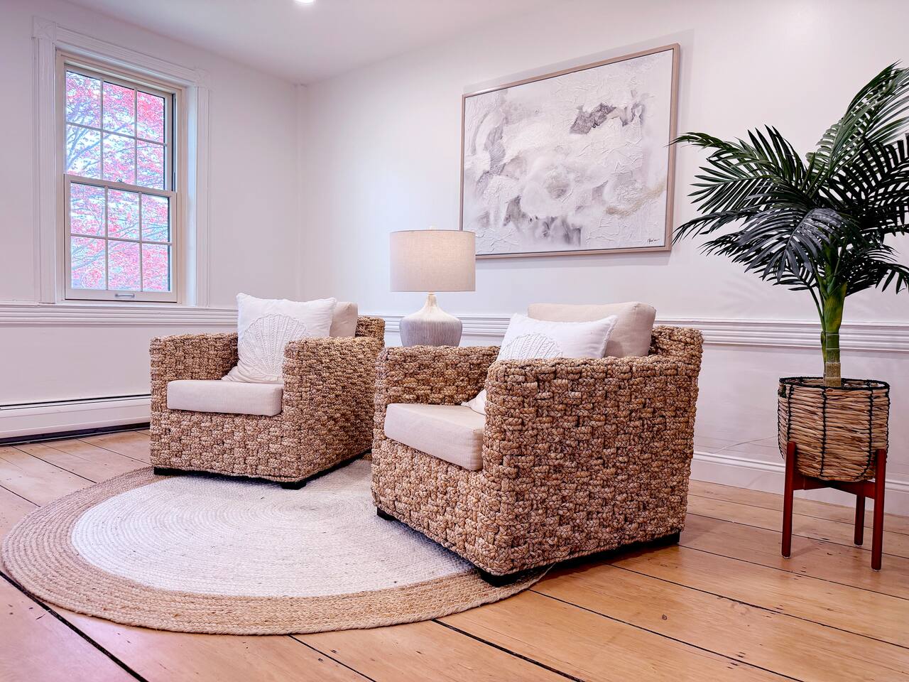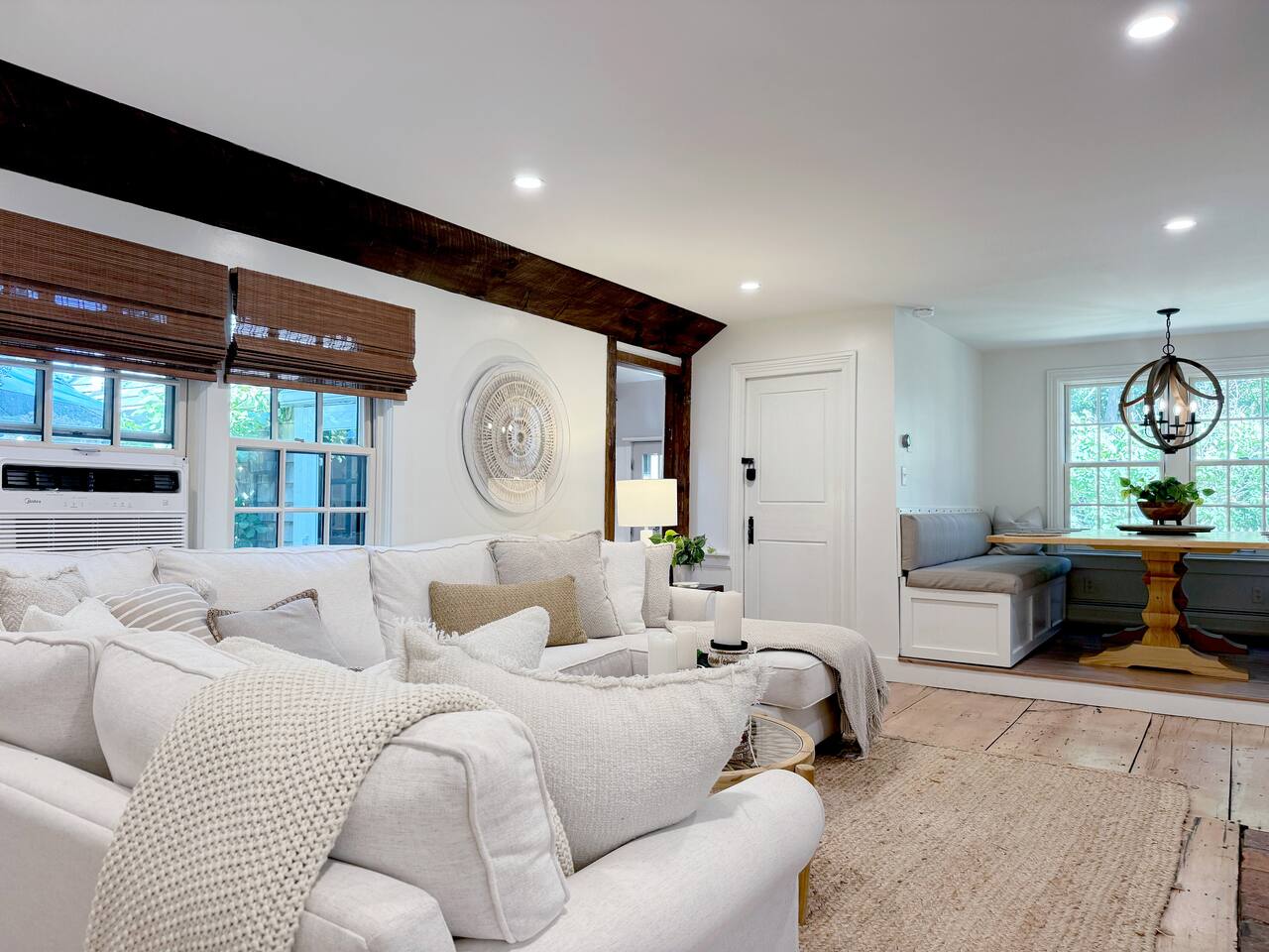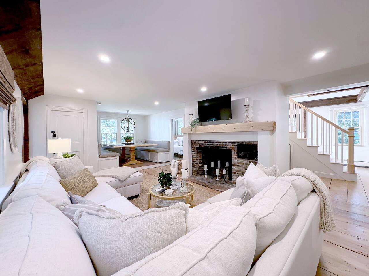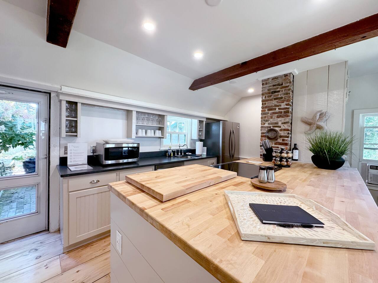 BEDROOMS: Sleeping Arrangements (Sleeps 8): King Bedroom - first floor (sleeps 2) - King-sized bed - Large bureau King Bedroom - first floor (sleeps 2) - King-sized bed - Large bureau and closet King Bedroom - second floor (sleeps 2) - King-sized bed - Large bureau and 2 closets Twin Bedroom - second floor (sleeps 2) - 2 Twin-sized beds - Closet BATHROOMS: • Large Fully Renovated Full Bath (2nd Floor) - soaker tub and separate stand up shower • Full Bath (1st Floor) - stand up shower • Half Bath (1st Floor) KITCHEN: • Soapstone counters • Large butcher block island • Stainless Steel Appliances • Microwave • Keurig Coffeemaker/Coffee Pods • Drip Coffeemaker • Electric Tea Kettle • Electric Cooktop • June Oven • Dishwasher • Cutlery • Cookware • Silverware • Wine Glasses • Coffee Mugs • Glassware • Dinnerware • Paper Towels • Dish Soap • Hand Soap • Sponge • Trash Bags • Dishwasher Tabs OUTDOORS: • Outdoor Dining Set with Umbrella - Seats 6 • Outdoor Lounging Area - Seats 5 • Fire Pit Area - Seats 6 • Gas Grill GENERAL: • Bath, Hand and Face Towels • Shampoo and Conditioner • Body Wash • Sheets • Pillows • Duvet Covers • Fleece Blankets • 8 Beach Chairs • 8 Beach Towels NEARBY ATTRACTIONS Walkable From Our Home: - Brooks Park - Cape Cod Lavendar Farm - Cape Cod Rail Trail - Ruggie's Restaurant - The Seal Pub and Cafe Within Minutes from Our Home by Car: - Thompson's Dog Park - Bank Street Beach - Red River Beach - Harwich Antiques Center - Bell's Neck Conservation Lands - Wychmere Beach Club - Bud's Go Karts - Grand Slam Entertainment, Cape Cod Baseball & Bumper Boats RESTAURANTS IN HARWICH - Mooncussers Tavern Inn & Restaurant - Brax Landing Waterfront Seafood Restaurant - Jake Rooney's Restaurant - The Lanyard Restaurant - Buca's Tuscan Roadhouse - 400 East Restaurant - Twenty-Eight Atlantic - Outer Bar - Weatherdeck Restaurant - Cape Sea Grille - The Port Restaurant - Thoreau's The Saltwind Cottage is said to have been transported from Nantucket, bringing with it timeless character and history. Two king bedrooms on the first floor with one full and one half bath and two bedrooms (one king and one twin) on the second floor with a fully renovated full bath. Original King Pine floors span the entire first level, adding warmth and authenticity. Set on 0.7 acres and bordering conservation land, the property offers exceptional privacy—perfect for enjoying the peaceful backyard. In the evening, unwind to the soothing croak of frogs, and wake each morning to the cheerful songs of birds. Walk around the corner from the house and stroll the Cape Cod Rail Trail and just a bit further away is the Cape Cod Lavender Farm (also walkable from the home).
